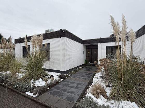 Mehr zum Angebot Lichtdurchfluteter Premium-Bungalow mit offenem Wohnkonzept und Kamin auf Erbpachtgrundstück: